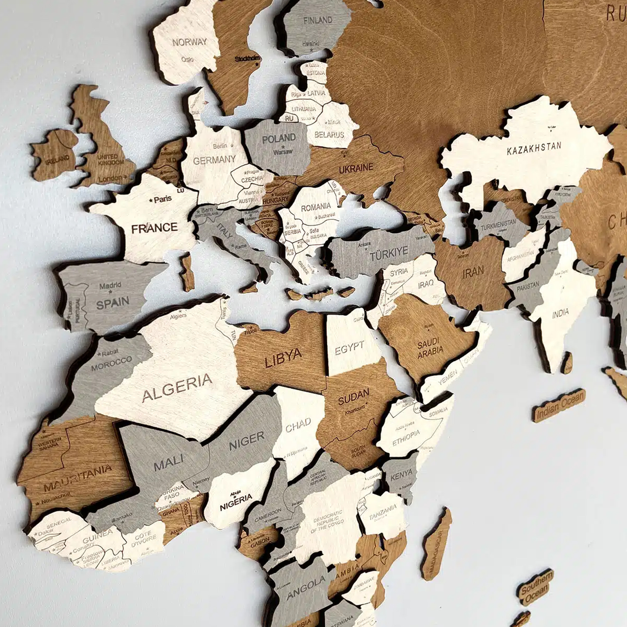 The 3D Wooden World Map in Creme finish is more than wall décor – it’s a story of places you’ve been and dreams still waiting on the horizon.
